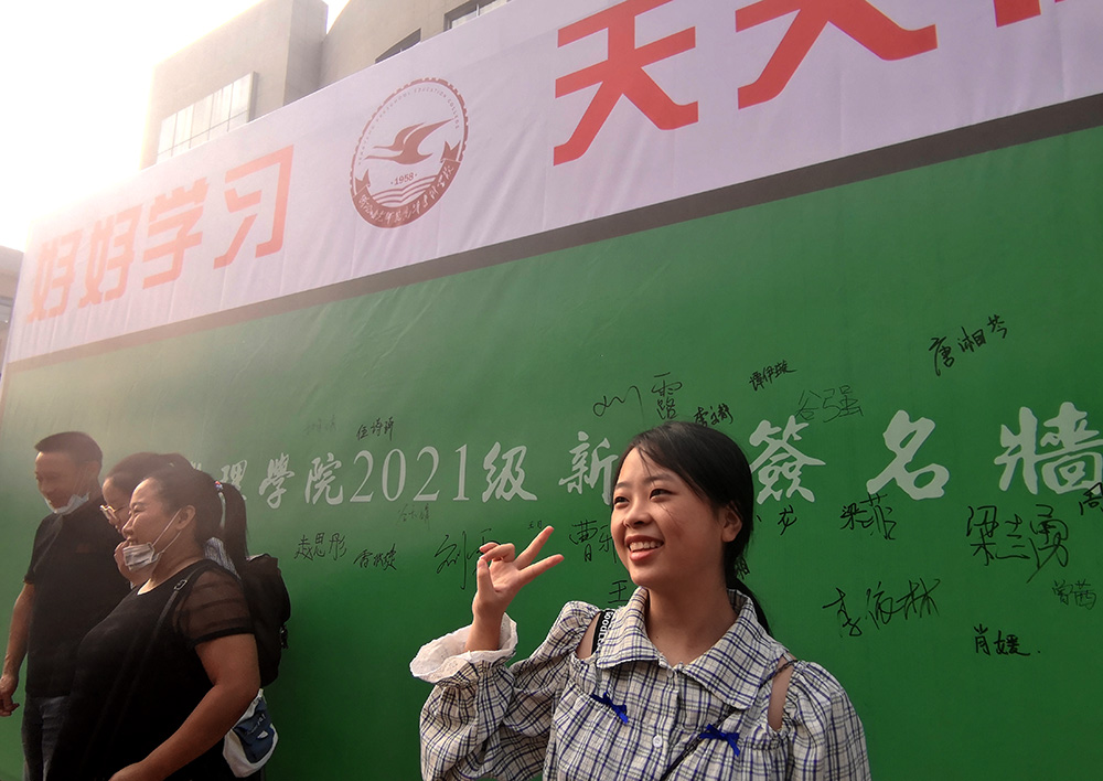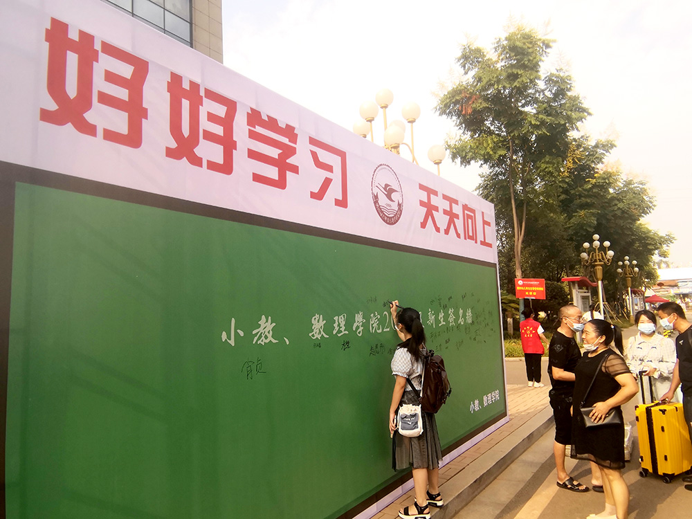 不仅如此,小学教育学院还准备好签字笔,每位新生都在签名墙上留下自己的名字,为新生报到增添了仪式感。