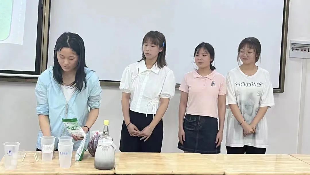 比赛中选手们自信大方,井井有条的开展着实验,从容淡定地向评委老师介绍着本组的实验步骤和原理,选手们细致周密的制作,异彩纷呈的展现赢得了在场老师和同学的惊叹和称赞。