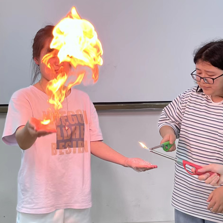 此次比赛为团队赛,是由四人组成一支队伍,需要在规定的时间内向评委以及观众展示自己组的小实验,并需要边操作边解说。晚上7:00,在同学们的满心期待和跃跃欲试中,主持人宣布比赛正式开始。参赛选手们按组别依次上台进行操作展示。