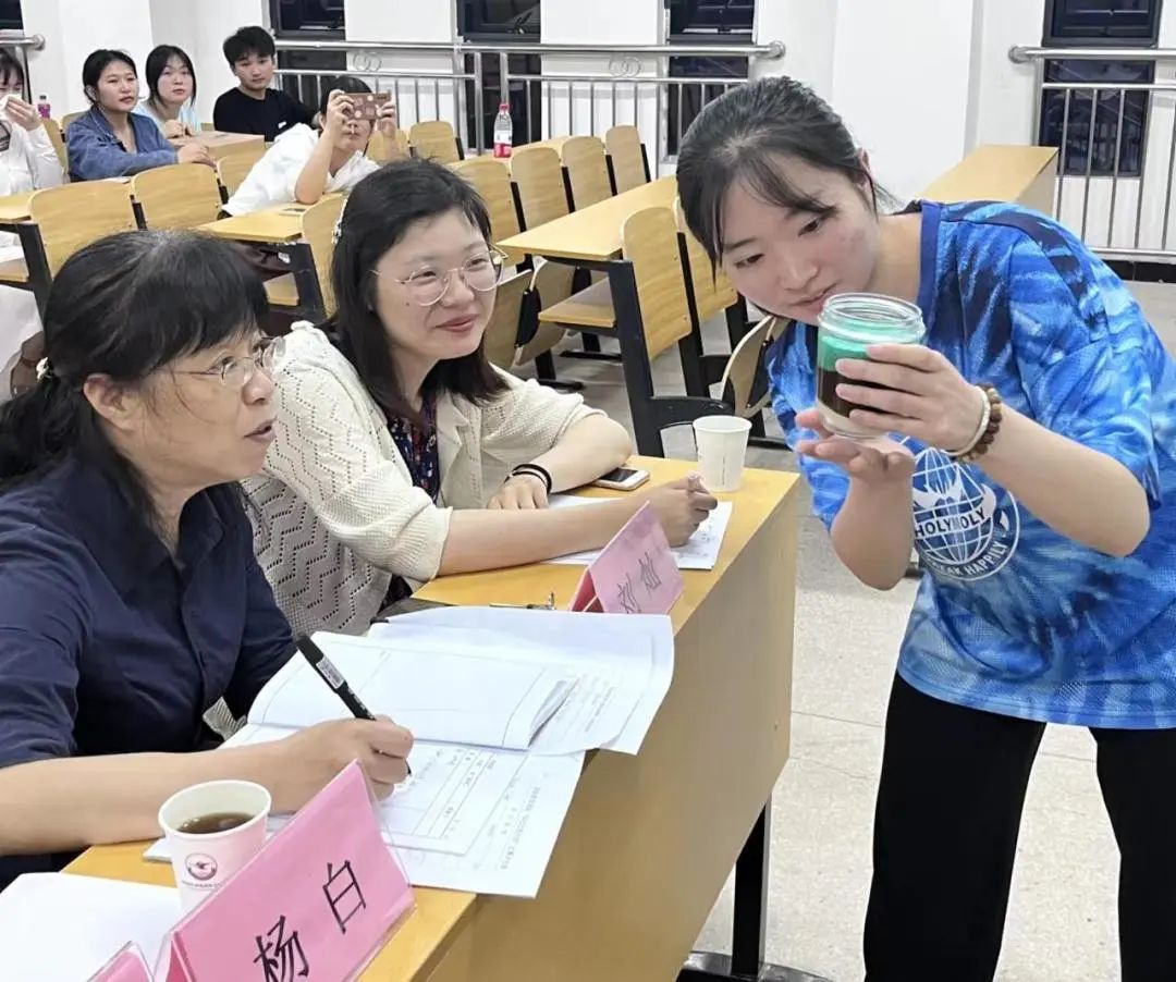 经过一晚上紧张激烈的角逐,参赛选手严谨、规范、细心地操作,展示出了对实验技能的高超的驾驭能力,评委老师也认真仔细地观察着每一位参赛选手的实验操作过程,并针对选手们在实验中的一些问题进行了点评。