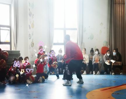 ②教师教态自然活泼:在感统公开课时,主班老师带幼儿做热身运动时,超级活泼并且有感染力,自己真正享受课堂,幼儿才能更好的融入课堂。