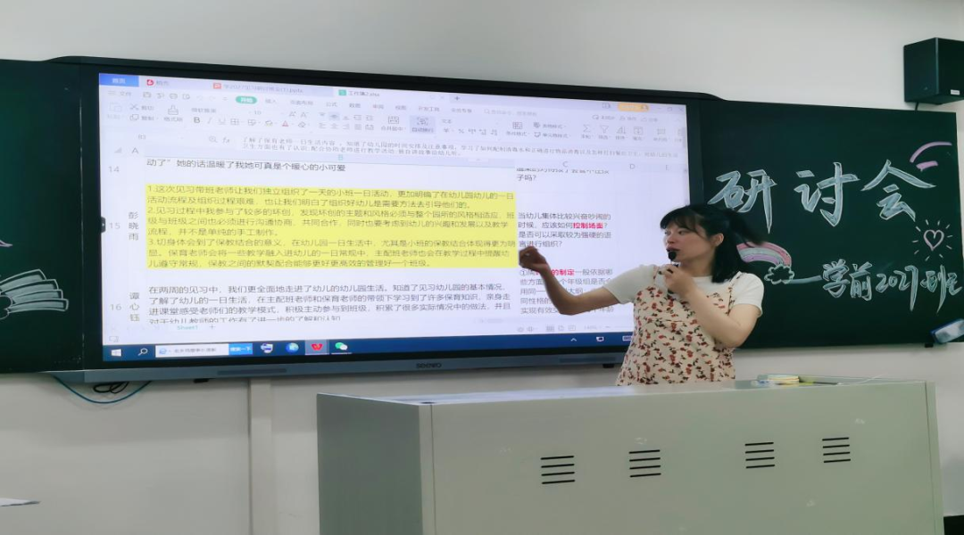 在幼儿园见习的日子结束啦,见习小老师回到学校重新转换成学生角色,两周的见习我们收获颇丰,6月1日晚自习我们组织了见习研讨分享会,一起来看看我们在分享会上的表现吧!