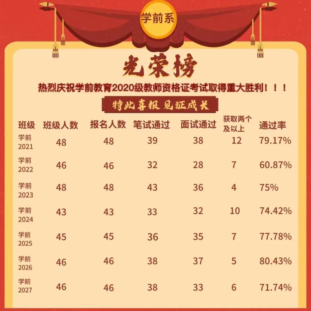 星光不负赶路人,天道酬勤佳音来。随着2022教师资格考试成绩的公布,学前教育系教资成绩纷纷报喜!现在让我们一起打开光荣榜,看看吧!