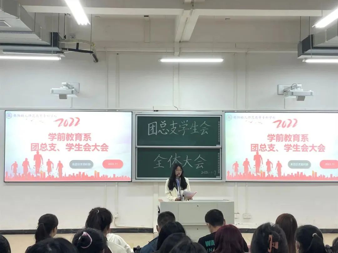 11月7日,学前教育系举行了团总支、学生会全体大会。学前教育系学生工作副主任吴迪、学生工作干事吴鹏、团总支指导老师陈琴、学生会指导老师罗娇霞出席会议,会议由彭哲瑶同学主持。