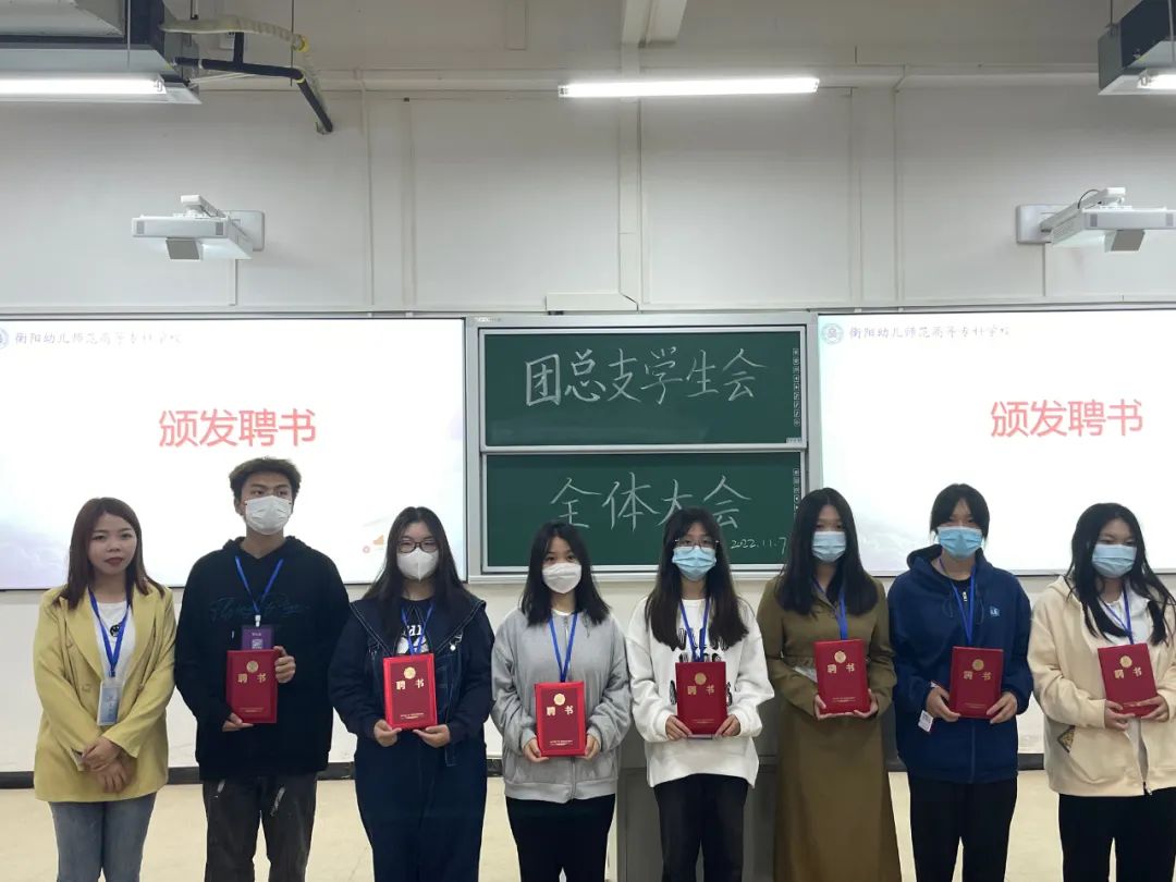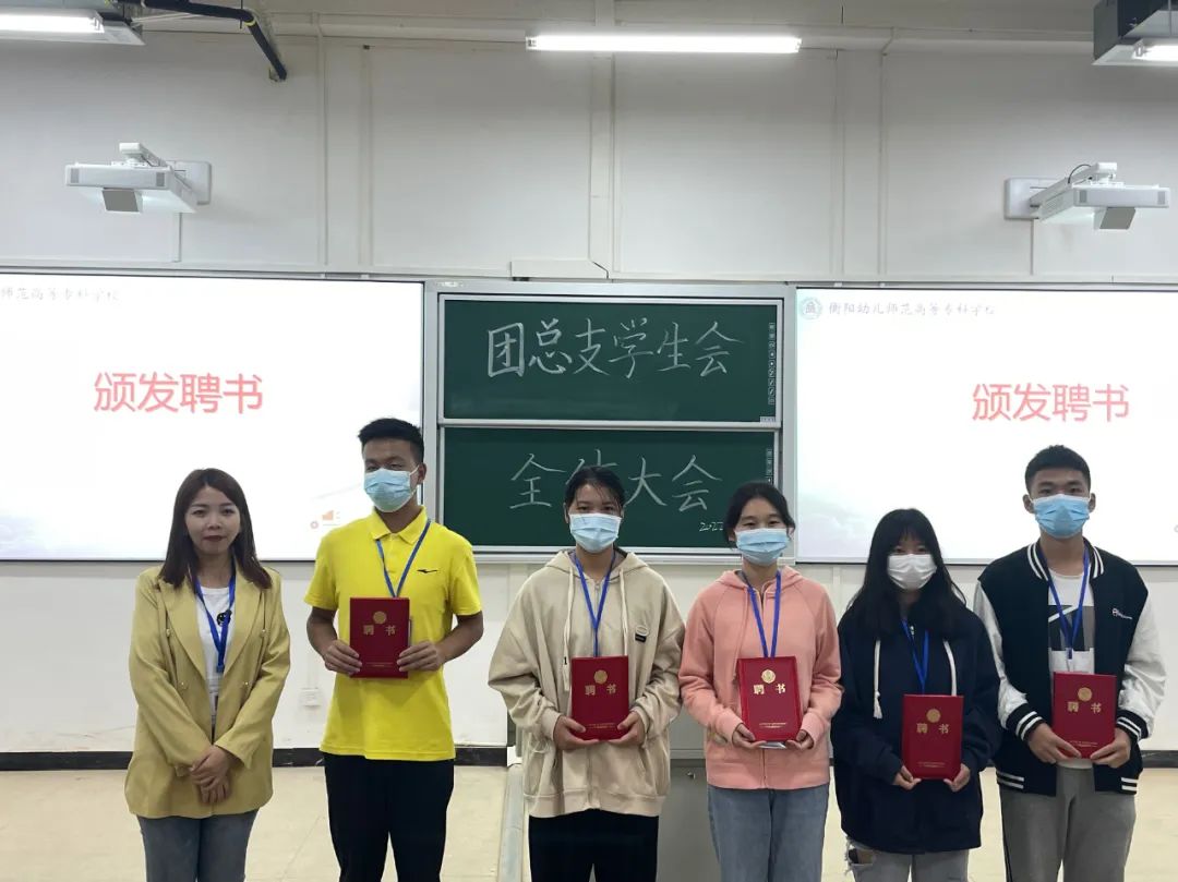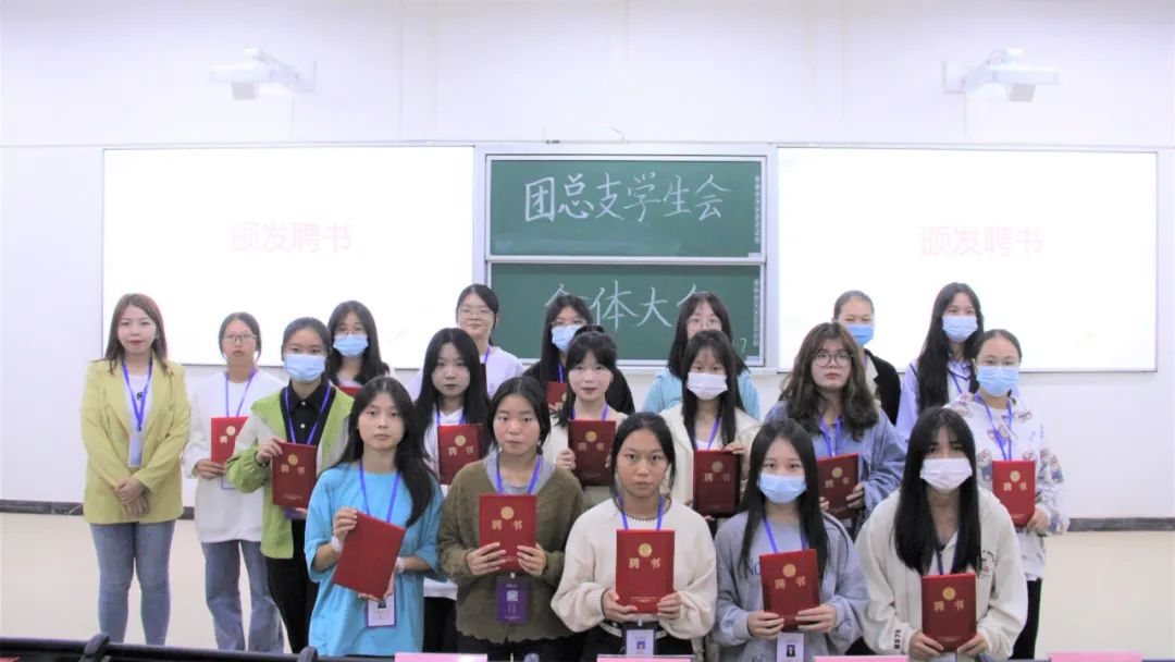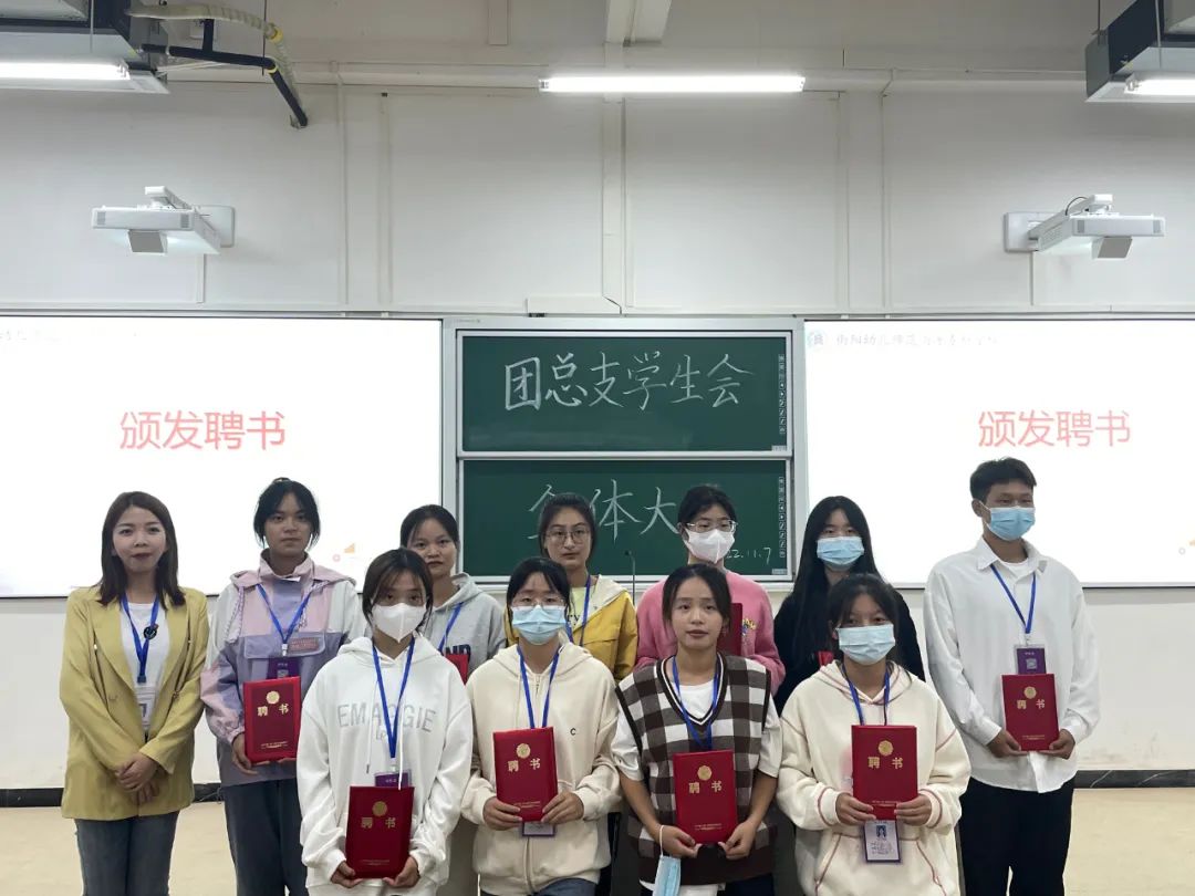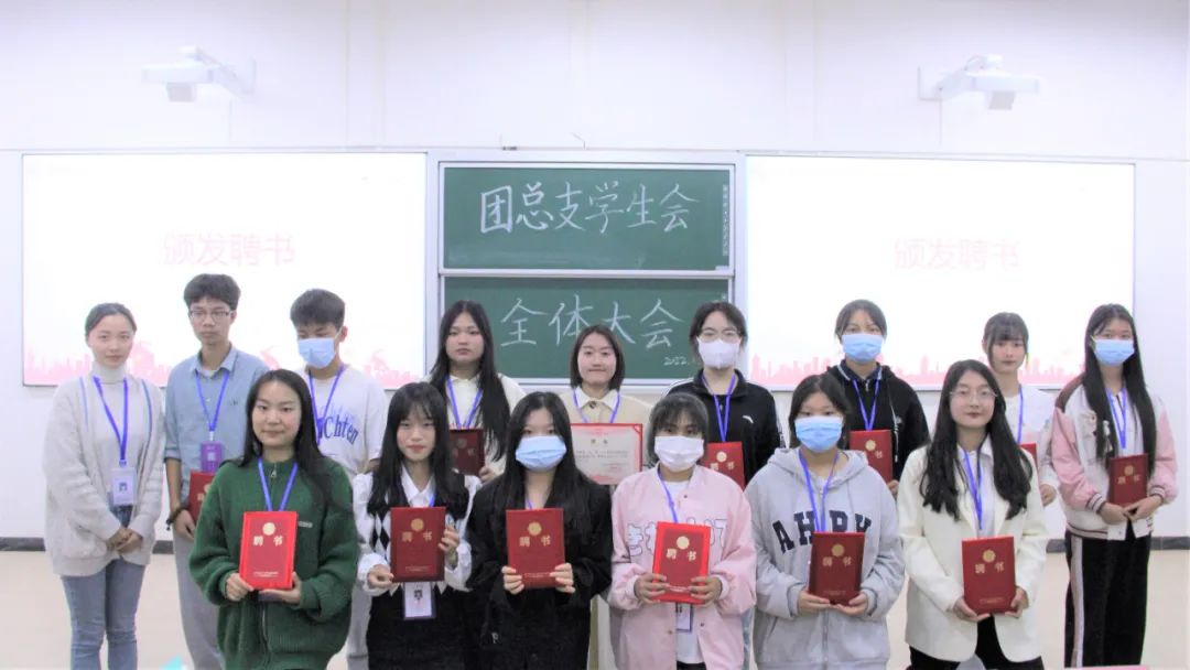 大会开始,吴迪副主任和吴鹏老师为团总支、学生会优秀学生干部颁发荣誉证书,指导老师陈琴、罗娇霞为团总支、学生会新成员颁发聘书。