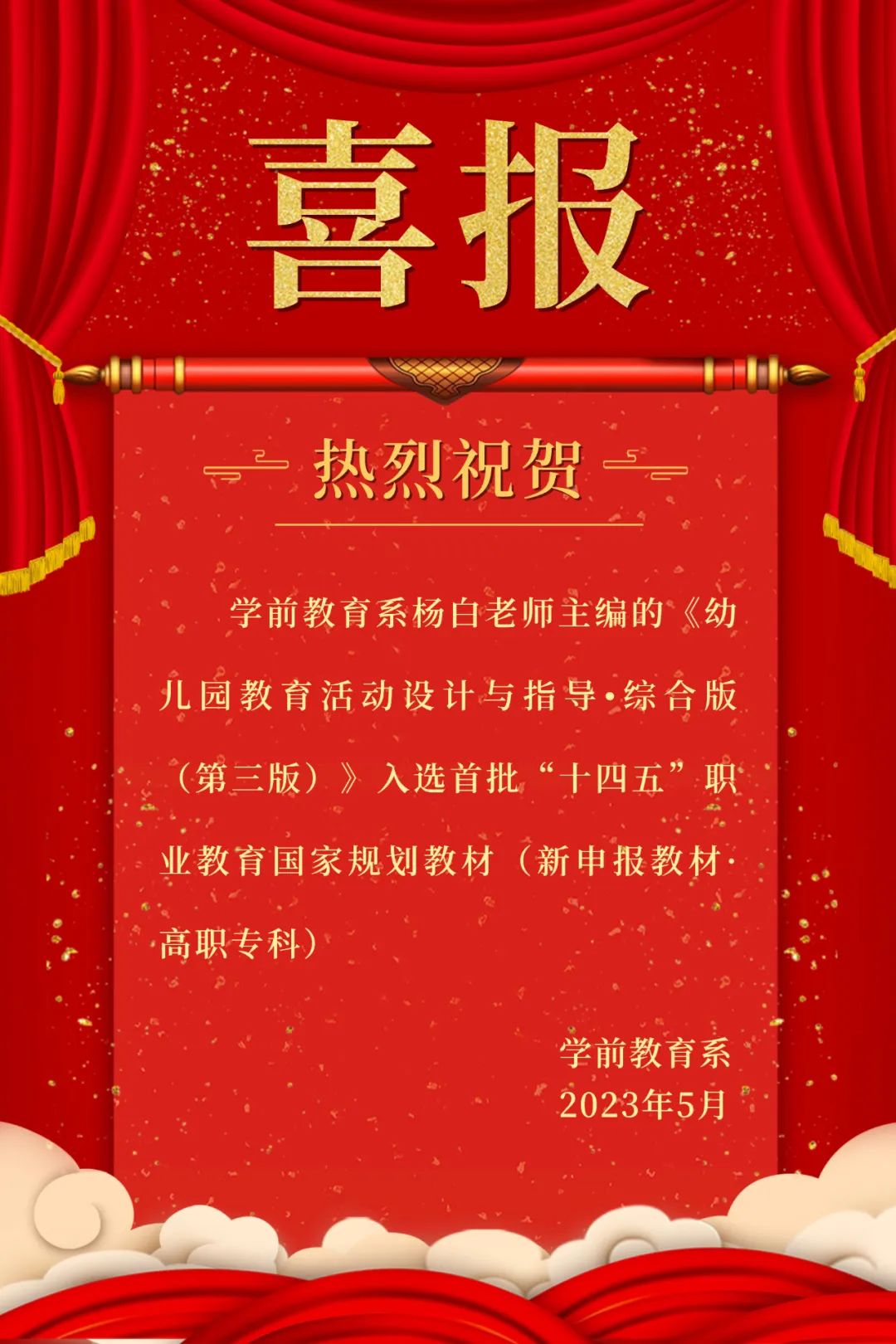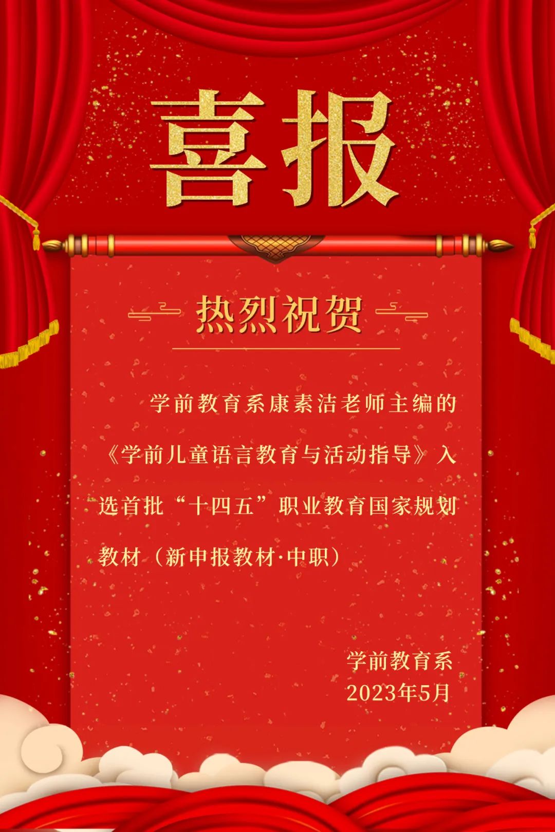 祝贺!学前教育系教师主编的教材入选首批“十四五”职业教育国家规划教材