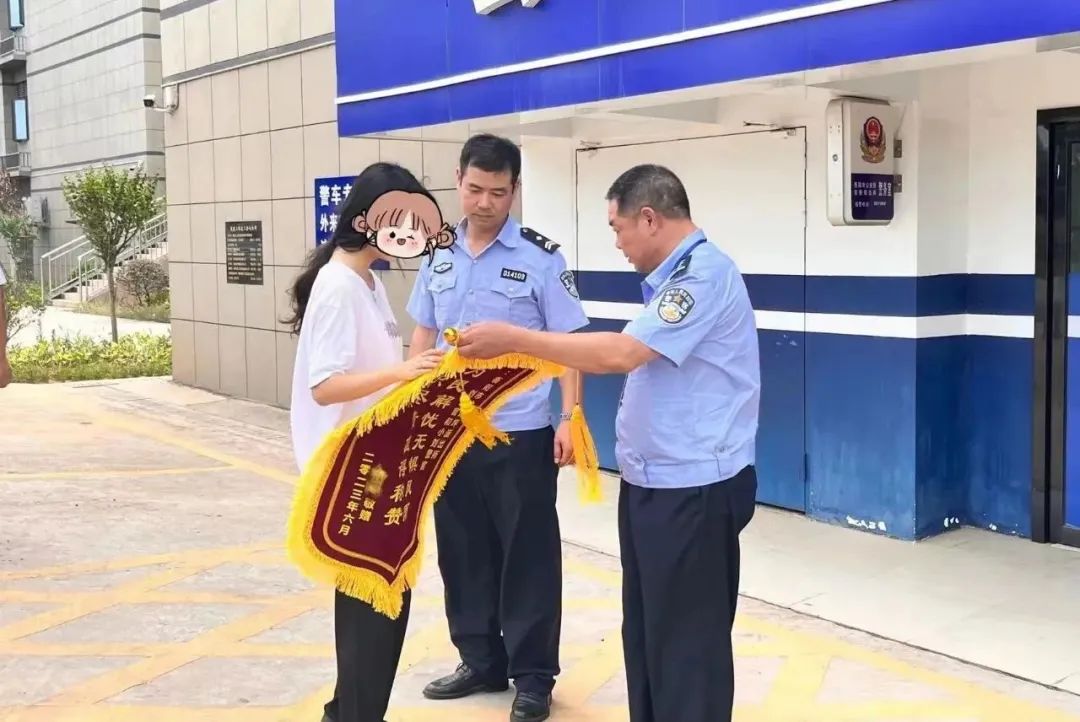 6月19日,小Y同学及学前教育系领导老师们携写有“为民解忧无惧风雨,尽职尽责值得称赞”的锦旗送到金龙坪派出所警官手中:“给警察叔叔送锦旗啦!”她衷心感谢民警叔叔为她挽回损失,表示一定吸取教训,提高防范电信诈骗意识和能力,不轻信短信、不随意点击陌生网址、不泄露个人信息,尤其是银行卡密码。