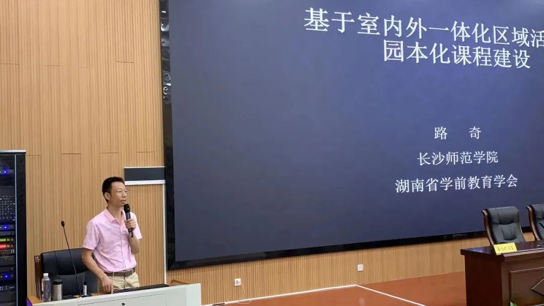 长沙师范学院学前教育学院副教授路奇的讲座题目《基于室内外一体化区域活动园本化课程建设》。自从2001年国家教育部颁布《幼儿园教育指导纲要〈试行〉》以来,幼儿园课程的改革越来越园本化,幼儿园的园本课程建设日益成为各个幼儿园课程改革的焦点。基于此,路教授提出园本化课程建设必须秉持“儿童为本、深度学习”为课程价值取向。