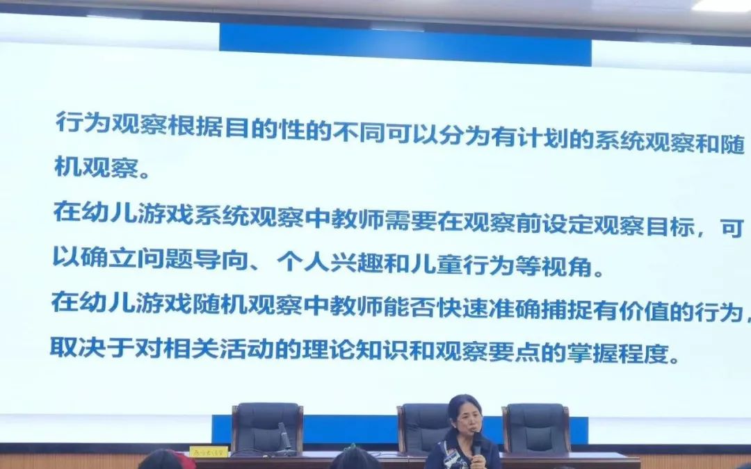 然后,康老师详细阐述了幼儿园游戏观察与记录的策略。要求幼儿教师提高观察意识,明确观察目标;掌握观察方法,做好观察记录;明确观察要点,科学分析观察结果。