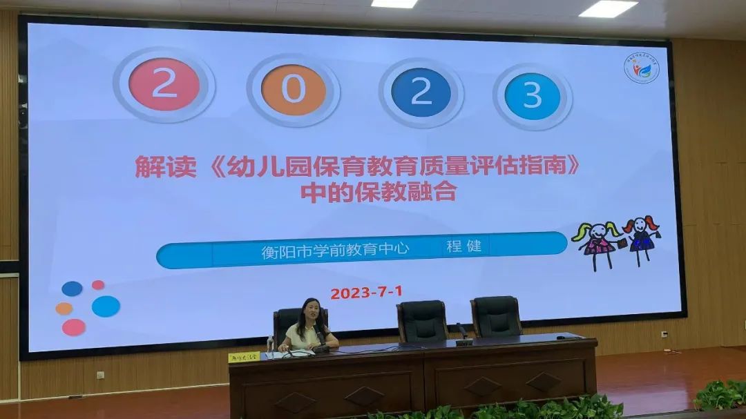 衡阳市学前教育中心副主任程健的讲座题目为解读《幼儿园保育教育质量评估指南中的保教融合》。建设高质量学前教育体系,离不开质量评估指南的正确导向与科学指引。对“评什么”和“怎样评”提出了明确指引,推动幼儿园建立科学的评估导向,落实科学保教实践,引导教研为幼儿园实践、教师专业成长服务,全面提升幼儿园保教质量具有重要意义。