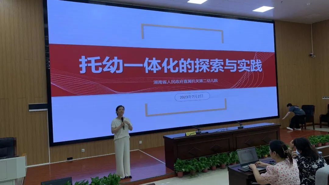 湖南省政府机关第二幼儿院吕奕副院长讲座的题目是《托幼一体化的探索与实践》,随着经济社会的发展,广大家长对0-3岁婴幼儿托育服务的需求不断增强,“托幼一体化”逐渐成为我国未来学前教育的发展方向,也是我国学前教育的一项划时代的重要改革举措。基于此,吕院长就《托幼一体化的探索与实践》做了深入浅出的分享。