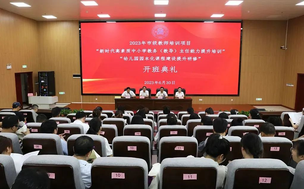 6月30日上午,衡阳市2023年市级教师培训项目“新时代高素质中小学教务(教导)主任能力提升培训”和“幼儿园园本化课程建设提升研修班”在买球赛的app官网举行开班仪式,来自市直幼儿园的105名骨干教师和中小学的83名教务(教导)主任即将开始为期三天的学习交流活动。衡阳幼儿师专党委委员、副校长林祥春,党委委员、宣传统战部部长欧阳晓华及学校相关处室、系部负责人出席此次开班仪式。