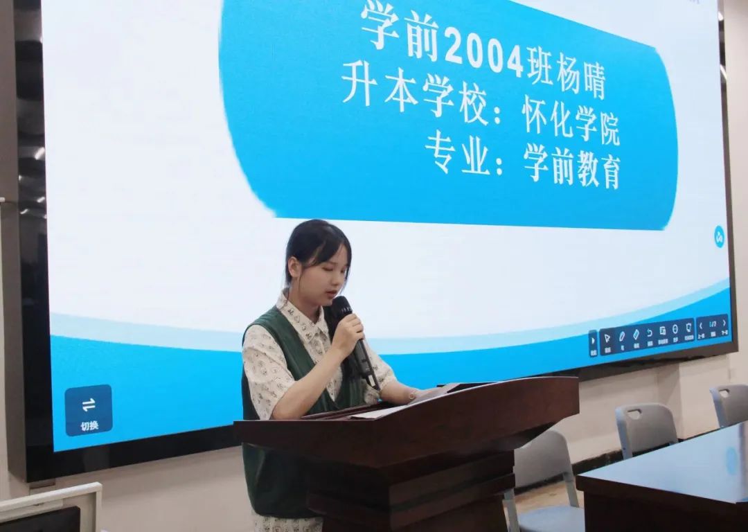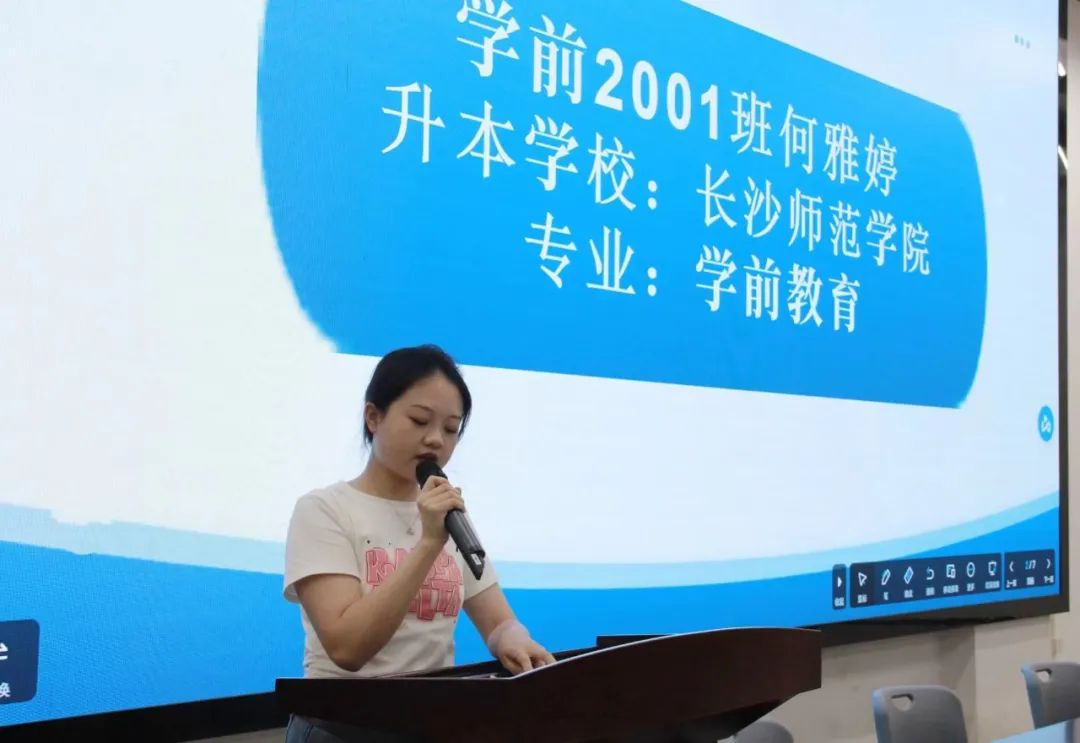 分享会第一个环节:专升本优秀学生经验分享。她们专升本的学校分别是吉首大学、湖南第一师范学院、怀化学院、湘南学院等。她们从招生政策解读、专业学校选择、历年录取情况、报考条件、考试科目、考试方式等方面分享了自己的备考经验。