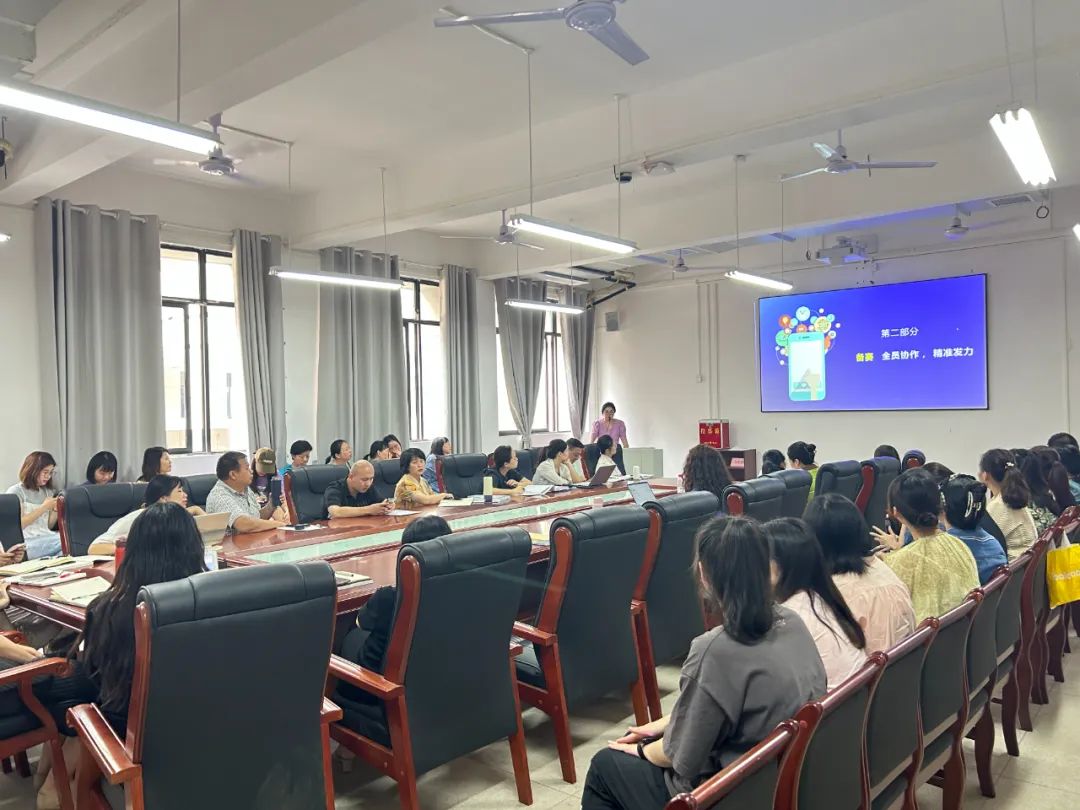 会议第三项,本学期工作任务布置。各部门负责人依次进行暑假工作总结并对九月份重点工作进行安排,为本学期教育教学工作的有序展开奠定了基础。