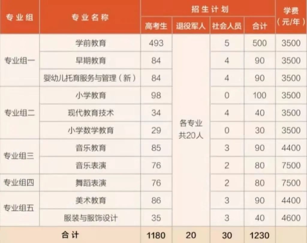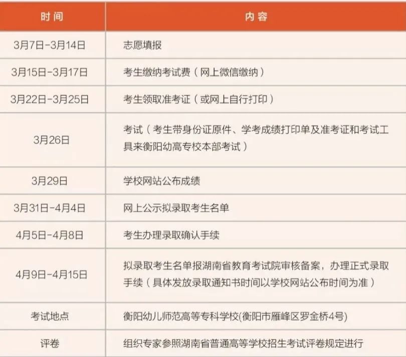 对上双眸,相聚启航 少年是你们,出发是我们 在灿烂青春里,我们终能相遇 ●学院风采● 学院学风浓厚,课堂尽展风采 有雄厚的师资力量和勤奋好学的同学 ●专业介绍● 小学教育专业: 培养在小学从事各科教学及班主任、少先队等工作的人才。 现代教育技术专业: 培养在小学从事信息技术教学、学校信息化建设和管理工作的人才。 小学数学教育专业: 培养在小学从事数学教学和管理工作的人才。 ●学院活动● "青春飞扬,温暖前行"元旦文艺汇演活动 三字一话活动优秀作品 校运动会上赛出风采 爱心支教行,冬日暖童心 ●单招流程● No.1 报名条件、办法 条件:单招对象为符合湖南省2022年高考(含对口招生考试)报名条件并已参加高考报名的人员。报考我校的考生必须符合《普通高等学校招生体验工作指导意见》及有关补充规定。 办法:单独招生报名方式为网上报名,考生登录湖南省高校招生考试信息管理平台(考生版)(https://www.hneao.cn),登录用户名与密码为考生高考报名时报名号与填报高考报名信息时设置的登录密码。 No.2 免试政策 退役军人、农民工等社会人员考生可免文化素质测试。社会人员需在2022年3月7日前提供相关证明材料来招就处登记审核,具体资料见我校招生章程第四章,否则按往届生方式考核。在世界技能组织主办的“世界技能大赛”中获奖的中国国家代表队选手符合高考报名条件的中职在校生,应届毕业和在校学习期间获全国职业院校技能大赛一、二、三等奖及省级职业技能大赛一等奖的中职应届毕业生,免试录取。满足以上条件的考生提供获奖证书原件、学校证明、身份证,于3月14日前来我校招生就业处登记审核,经核实无误后我校方可免试录取。 No.3 考试内容与成绩 学校单招实行“文化素质+职业技能”考试招生办法,按照考生类别分别进行命题和组考。考生需须携本人有效身份证件,按报名类别参加学校组织的考试和录取。具体考试科目要求如下: 1.文化素质考试: 主要考察高中教育阶段语文、数学、外语等基础科目知识,采用闭卷笔试形式。其中,对于应届普通高中毕业生,直接使用普通高中学业水平合格性考试成绩。中等职业学校应往届毕业生、普通高中往届毕业生、没有学业水平合格性考试成绩的应届普通高中毕业生必须参加学校组织的文化考试。 ①考试科目:语文、数学、英语三科,其中语文40分,数学30分,英语30分,共计100分 ②考试时量:120分钟 ③考试形式:闭卷考试 注:退役军人和社会人员考生可免予文化素质考试! 2.职业技能测试: ①职业技能测试成绩满分100分,非面试成绩占80分,面试成绩占20分 ②职业技能测试内容与方式: 3.心理测试:不计分,只作为参考依据,考试时间,另行通知。 No.4 成绩计算 1.非艺术类专业普通高中应届生: 最终成绩=高中学业水平考试语数外三科平均成绩×60%+职业技能测试水平×40%; 2.非艺术类专业普通高中往届生、中等职业学校应往届生: 最终成绩=文化素质成绩×60%+职业技能测试水平×40%; 3.艺术类专业的考生: 最终成绩=文化素质成绩×30%+职业技能测试水平×70%; 4.退役军人、社会人员考生: 免文化素质考试,职业技能测试为最终成绩。 No.5 单独招生安排 No.6 2022年单招招生专业及计划 注:1.以上专业学制为3年; 2.具体收费按物价部门标准执行。